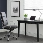 The Norton Office Chair offers a soft, deep cushioned padded seat and back providing a comfortable sit throughout the day. Finished in a black faux leather with a chrome plated steel base, the Norton Office Chair is perfect for any office décor.
