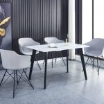 The Nova Table is a white frosted MDF top with black metal frame.