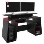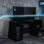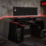 The Onyx gaming computer desk has been made with gamers fully in mind! It has everything a busy gamer could need. Featuring a large top shelf big enough for two large monitors and a generously sized ergonomic desk below, suitable for the keyboard, mouse, controllers, games and more.