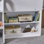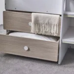 • Equipped with two pull-out drawers and open shelving, providing ample space for toys and necessities.