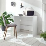 If you don’t have the unlimited space (or budget) to create a grand office or study space at home – but want to escape from the kitchen table – this Pierre desk is a tempting option. This simple yet practical console-style desk is designed to slip into the corner of a room, creating a dedicated workstation that’s just right for a laptop. Easy to assemble out of the box, this great-value desk is available in wipe-clean white, grey or oak-effect finishes.