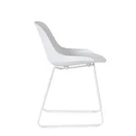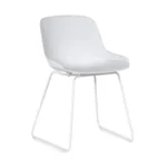 • Featuring wide black metal legs and a dark grey-coated, light grey and white seat, this chair offers a robust and durable foundation, ensuring longevity and stability.