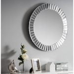 The Sonata round wall mirror is a clean and contemporary design. Constructed from a hardwood base with a stunning beveled glass front, this mirror is sure to be the focal point of any room. The Sonata is easy to mount, making it practical for everyone.