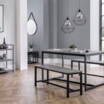 Simplistic in design with a contemporary style, the Staten Dining Table will add a stunning industrial look to any living and dining area. Constructed from a black coated metal frame, complemented by a striking concrete effect tops, to create a very stylish, modern product. Featured with two Staten benches.