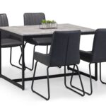 Simplistic in design with a contemporary style, the Staten Dining Table will add a stunning industrial look to any living and dining area. Constructed from a black coated metal frame, complemented by a striking concrete effect tops, to create a very stylish, modern product. Featured with 4 Soho dining chairs. This Retro Soho Dining Chair is finished in an antique black faux leather with a striking black metal frame, sure to compliment any contemporary décor.