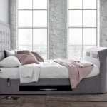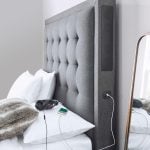 The Titan 4.1 Media Bed is upholstered in a soft charcoal grey fabric and boasts an imposing feature head board. It is the ultimate multimedia bed. A remote-controlled TV lift mechanism capable of accommodating up to a 43” TV (subject to TV dimensions and ports fittings) allows hideaway TV storage. The built-in speaker system has 8 directional speakers in the footend with a further 8 located in the headboard offering amazing sound with visible sound levels included on the remote control for easy adjustment. This updated model has a built-in woofer and fewer connections for easier assembly and set up. Peripheral connections, headphone socket, aux and USB port, are located in each side of the head board for easy access.