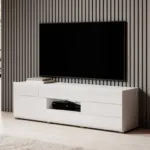 The Toledo 41 is a functional, modern and brilliantly crafted TV cabinet that impresses with its high-quality craftsmanship and design. It has two hinged doors with a pair of drawers and one LED-compatible compartment for storage. The cabinet’s modest size makes it the perfect choice for creating a stylish entertainment corner in the house, whether in the living room or bedroom.