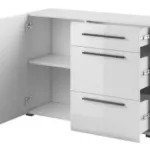 This high-quality sideboard cabinet is designed to impress, with a beautiful elegant design that will seamlessly blend into any modern, Scandinavian or contemporary living space. Maintain a clean, clutter-free look by storing items in its three spacious drawers or two closed compartments behind the hinged door.