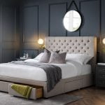 Crafted from beautiful grey fabric, the Wilton Bed exudes sophistication and grace. With a deep buttoned headboard and 4 drawers, not only is this bed gorgeous to look at – it provides additional space for all your storage needs.