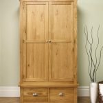 This practical wardrobe is spacious behind sturdy oak double doors, including two bottom drawers, perfect for the additional storage you need.