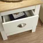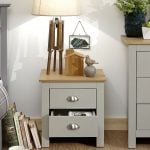 The York 2 Drawer Bedside is a stylish shaker-inspired bedside table that’s perfect for kitting out a bedroom in first-class style. The sleek lines, soft grey or cream foiled finish with contrasting oak effect tops and brushed steel handles create a sophisticated impression. The bedside table provides effective storage with 2 drawers. Ideal for a room where understated elegance is the goal.